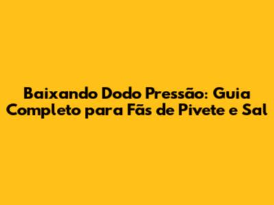 Hey, galera! Se você é fã de um som que te bota pra cima, com certeza já ouviu falar de "Dodo Pressão" de Pivete e Sal. Essa música, com toda a sua energia e batida contagiante, conquistou muitos corações. Mas, como fazer para baixar musica Dodo Pressao Pivete e Sal e curtir essa vibe onde quer que você vá? Calma, que o tio aqui vai te dar um guia completo, com dicas e truques para você ter essa e outras músicas da dupla no seu celular, computador ou onde mais você quiser.