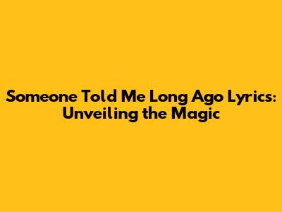 Someone Told Me Long Ago Lyrics: Meaning & Origins